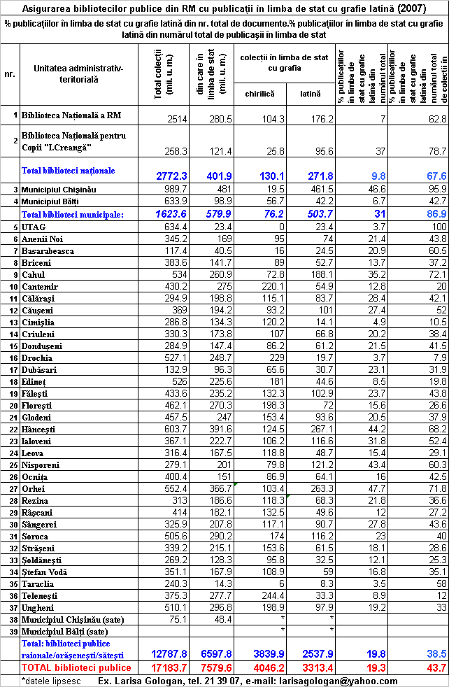 Asigurarea Bibliotecilor publice din RM cu publicaţii în limba de Stat cu grafie latină (2009)